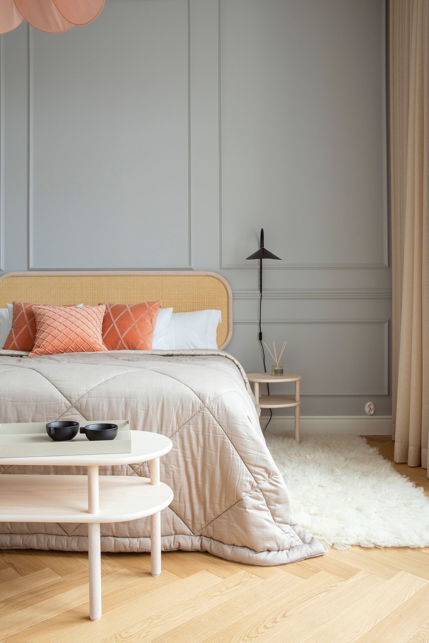Sisustussuunnittelija Riikka Laitinen toteutti asiakkaalle upean makuuhuoneen ilmeen — saman lopputuloksen voit luoda näillä tuotteilla.