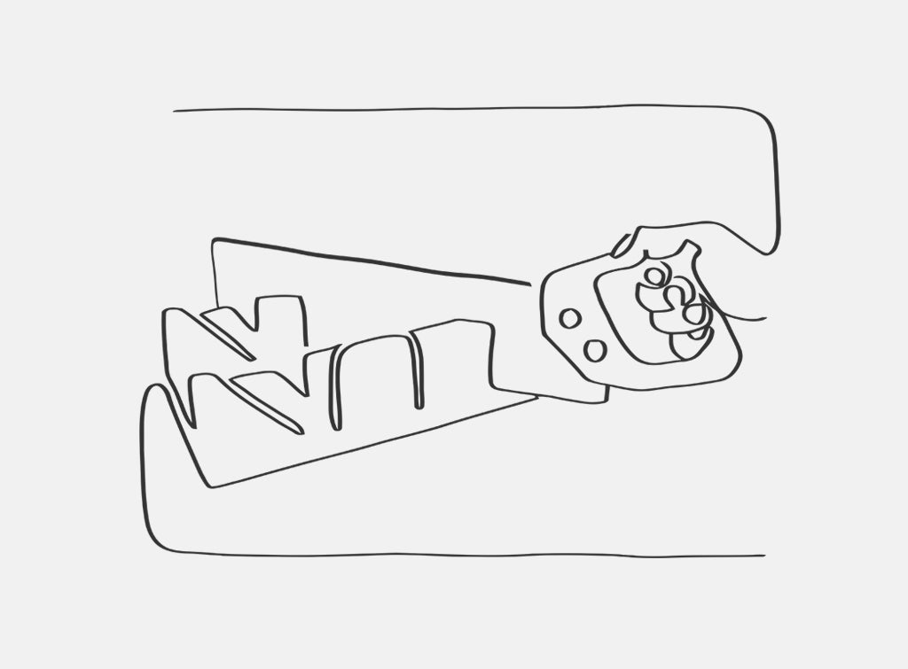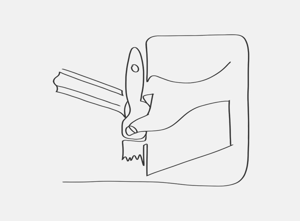 Sahaa lista käsisahan ja jiirin avulla oikeaan kulmaan, tai käytä vaihtoehtoisesti jiirisahaa ja tarkoitukseen sopivaa terää. Käsittele leikkauskohdat hiomapaperilla (max 150) ja poista sahanpuru kostealla sienellä.